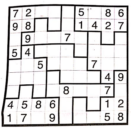 위의 Jigsaw Sudoku에서는 한 가지 조건이 더 있는데,