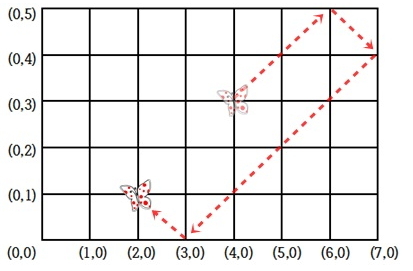 (4,3) 위치에 있던 나비가 8초 동안 날아간 후